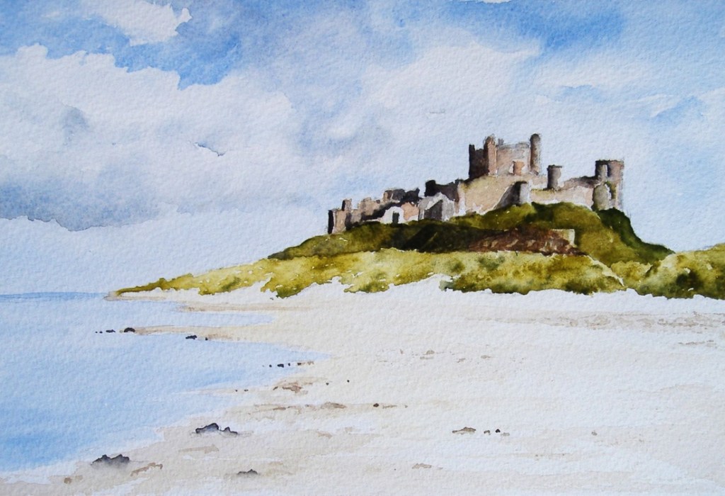 We have just returned from a week in Northumberland, in the northeast of England. The rugged coast is dotted with beautiful sandy beaches, castles and fishing ports. Here are some watercolours of a few of the places we visited.