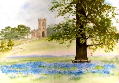 Spent the weekend in Malvern, Worcwestershire visiting the Flower show there. The following day we visited Croome park – here is a watercolour showing the bluebells under the trees.