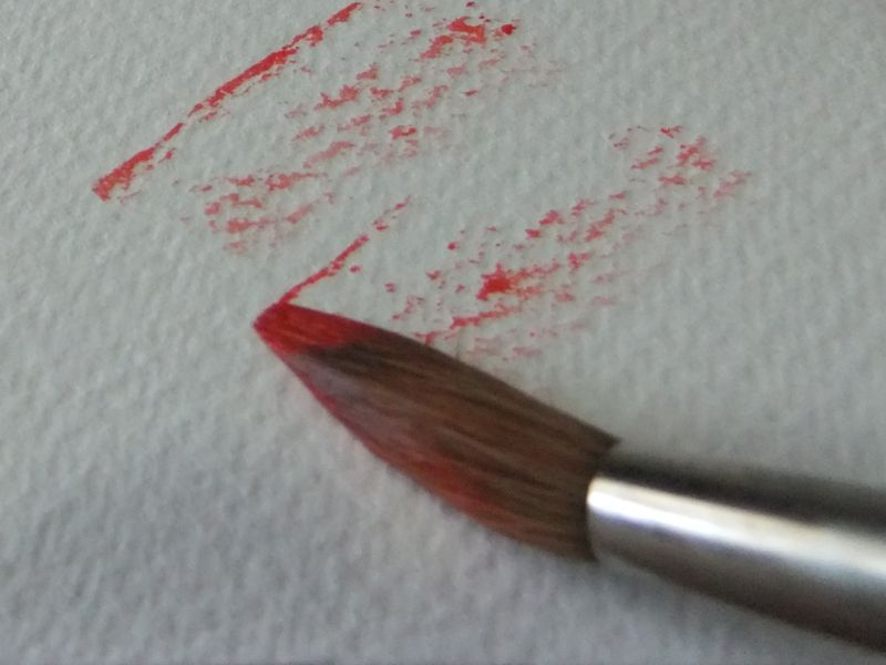 With the brush almost dry, drag the side across the paper. the colour will be picked up by the ‘tooth’ of the paper (the tops of the textured surface). This can be used to add texture to your paintings and for representing the foliage on trees and bushes