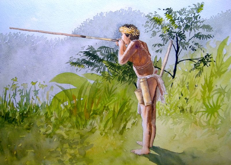 Next we look at the story behind a picture – it is this that gives the image life. You may add things to the background or foreground to set the scene. By painting a figure slightly out of balance (with a foot off the ground for example) you add a sense of movement. You can soften (blur) the edges of moving limbs or objects to show the movement. Lines can also show movement – they can be subtle soft lines as well as hard ones as in comic strips. By adding a story we have given another dimension to our painting and added another level of interest for the viewer.
