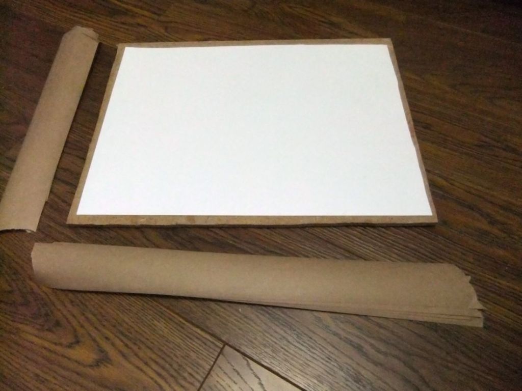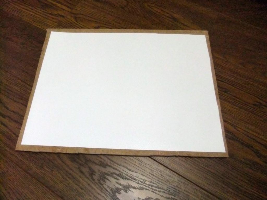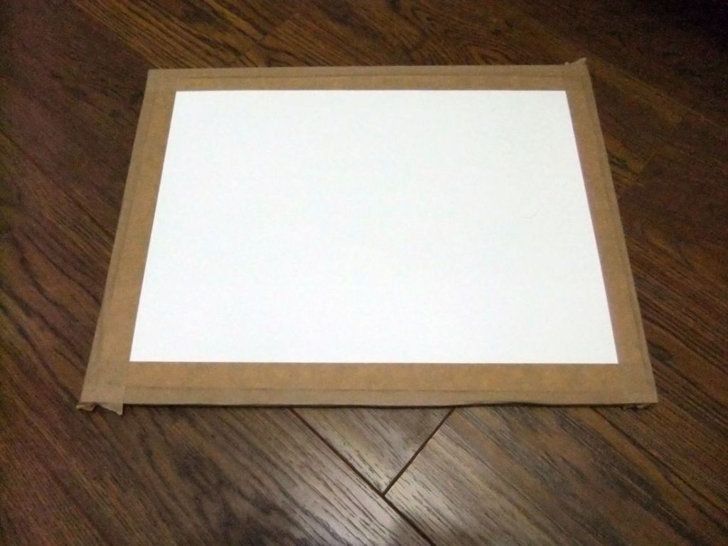 Cut 4 lengths of tape to fix all sides of the paper with enough to overlap at the corners